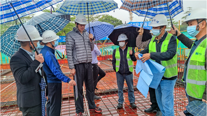 11月7日,我司董事長宋濤帶領(lǐng)公司中高層督導(dǎo)檢查東莞市生物技術(shù)產(chǎn)業(yè)大廈項目的疫情防控、安全質(zhì)量和工程進(jìn)度工作?! ‘?dāng)天,宋濤董事長一行首先巡查了生技大廈項目現(xiàn)場的疫情防控、安全質(zhì)量和工程施工等情況..